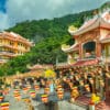Tượng Phật Bà Tây Bổ Đà Sơn (đại diện cho hiện tại): Tọa lạc trên đỉnh núi, bức tượng Phật Bà bằng đồng đỏ cao 72m lập kỷ lục là tượng Phật cao nhất châu Á.